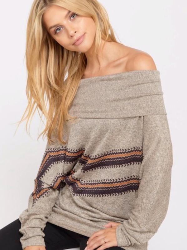 Taupe Long Sleeve Cowl Neck Tunic Top